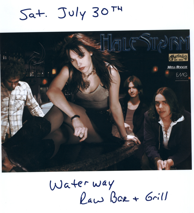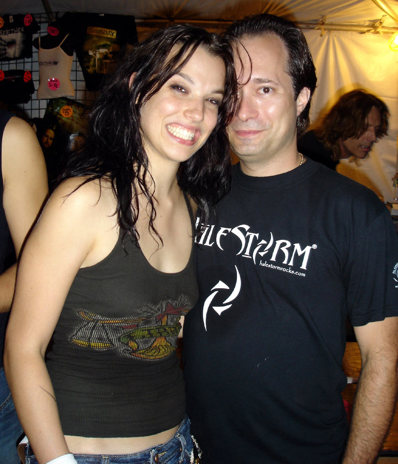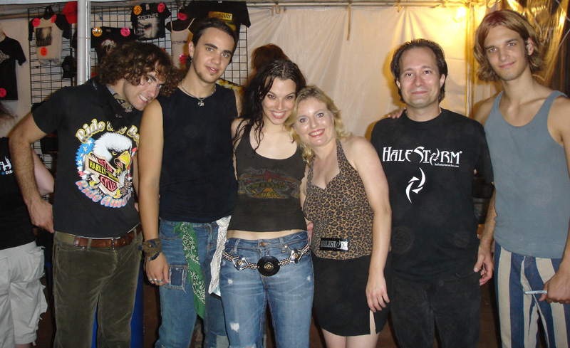 color photo promoting the 2005 July 30 show at the Waterway in York PA Lzzy and Barry at Musikfest, 2005 August 07, Bethlehem PA. photo credit: William Bader Halestorm with Barry and Adrienne at Musikfest, 2005 August 07 (left to right: Josh, Joe, Lzzy, Adrienne, Barry, Arejay). photo credit: William Bader Robert's photos from lots of Halestorm gigs at sailjet.com Photos of Lzzy from Grape Street (Philadelphia PA) live EP taping, 2005 August 14. Photos of Halestorm from the Waterway (York PA) CD Release Party, 2005 December 10. Older Halestorm promotional photos are available in the memorabilia section. |